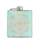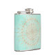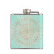 Mandala elegante da boêmia na moda, flor tribal de tendências, brilho, textura falsa de folha de ouro, cor branca de aquarela, pequenas pinceladas pintadas sobre fundo de menta. Pontos, listras, triângulos, formas geométricas. Mandala floral, mística, sonhadora, henna, primavera, cores brilhantes de verão. Feminina, giro, elegante, chica, moda, simples, moda, artística, arte, trabalho de arte