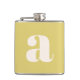 This flask features a bold oversized lowercase initial in cream on a warm butter yellow background — fun, graphic, and a great personalized gift. A solid pick for a bachelorette party, birthday, or bridesmaid gift.