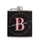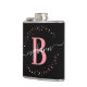 Feminino, moderno, elegante, trendy, rosa e preto, monograma inicial personalizado nome script garrafa. Apresentando uma inicial monograma e um nome feminino em uma fonte de caligrafia manuscrita com cauda swash e moldura de círculo pontilhado em torno da sua monograma. Presente feminino perfeito para namorada, irmã, mãe, aniversário, casamento, chá de noiva, ou qualquer pessoa que ama coisas bonitas e elegantes.