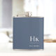 Monogram Personalized Classic Navy Blue White Monogrammed Flask