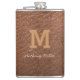 Couro castanho moderno, guião, frasco monograma. Personalize-o com o seu nome e nome iniciais.