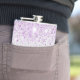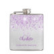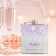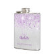 Um fundo com aparência prateada falsa e brilho violeta falso. Personalize e adicione seu primeiro nome, iniciais do monograma e nome completo. O primeiro nome é escrito em roxo com uma fonte manuscrita moderna.
