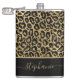 Este frasco de na moda apresenta uma impressão brilhante do leopardo sobre fundo dourado com borda preta e personalizada com o seu nome.