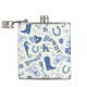 Padrão divertido em tons de azul e branco com elementos costeiros/cowgirl (bota de cowgirl, chapéu, ferradura, cavalo, estrelas, laços, cerejas, cavalo-marinho, estrela-do-mar, concha, tipografia howdy, yeehaw) como festa costeira/na praia, presente/lembrança para despedida de solteira, chá de noiva, festa de aniversário, festa de formatura, etc.