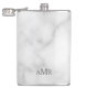 O design clássico apresenta monograma inicial personalizado de 3 letras em estilo de fonte serif clássica cinza em fundo de mármore branco.