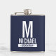 Monograma personalizado e presentes de nome minimalista moderno Este design apresenta um monograma personalizado de padrinho de casamento, nome e título no estilo de letra branco negrito do sans em branco, em fundo azul marinho. Perfeito também para o melhor homem e mais.