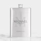 Adicione um toque pessoal ao seu casamento com um frasco de padrinhos de casamento personalizado. Este frasco apresenta um nome de padrinho de casamento personalizado com título em cinza e monograma em cinzas-luz como fundo, em estilo serif clássico. Também perfeito para o melhor homem, pai da noiva e mais.
