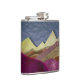 Uma paisagem abstrato com cores e texturas únicas mostrando uma cena de montanha em tons de roxo, bronzeado, bege e e marrom.