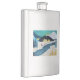 Uma paisagem digital com cores brilhantes e texturas mostrando um cogumelo com uma equipe de trenó de cão e um sol cor-de-rosa brilhante em tons de azul, ouro, ciano e amarelo.