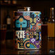 Structure: A dense, tiled mosaic of non-repeating blocks featuring stylized nature, geometric shapes, and cultural/symbolic iconography.