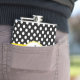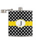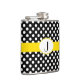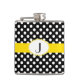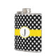 Balão na moda feminino feito em bolinhas preta e branca, com uma banda amarela clara, no meio do frasco. A placa gráfica de uma placa de monograma branco, oval, de bordo esmagado amarelo, no meio da frente do frasco, tem um monograma preto de uma letra. Personalize o monograma para si mesmo ou como uma bela ideia de presente.