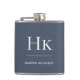 Navy Blue White Monogram Elegant Personalized Flask