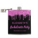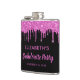 Lindro e divertido frasco personalizado para a despedida de solteira com brilho rosa quente falso pingando em um fundo preto e "Festa de Despedida de Solteira" em uma escrita rosa quente. Você pode personalizar ainda mais com seu nome e data da festa.