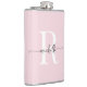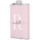 Flasco Personalizado Moderno Feminino Cor-de-Rosa com Monograma de Nome Inicial Personalizado. Apresentando um primeiro nome (ou sobrenome) em uma linda tipografia de letra manuscrita com cauda swash (ou caligrafia) com monograma inicial em branco e preto sobre fundo cor-de-rosa. Ótimo presente feminino elegante para aquecimento de casa, também para despedida de solteira, para damas de honra, casamento, dia das mães, aniversário, festa de 16 anos, chá de noiva, para festa de formatura e é para a garota que ama coisas elegantes e estilosas únicas.