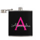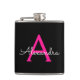 Monograma Rosa Quente e Preto Adicione Seu Próprio Nome Fator Flask. Isto faz o doce e perfeito aniversário de 16 anos, casamento, chá de panela, aniversário, chá de fraldas ou festa de solteira presente para alguém que ama luxo de luxo e estilos quíticos.