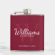 Adicione um toque pessoal ao seu casamento com um frasco de padrinhos de casamento personalizado. Este frasco apresenta o nome personalizado do padrinho de casamento no estilo de letra branco clássico do script, com detalhes de casamento no estilo de letra branco clássico do serif e monograma no estilo de letra vermelho claro do serif clássico vermelho-vermelho como fundo, em fundo vermelho-burgundy. Também perfeito para o melhor homem, pai da noiva e mais.