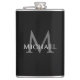 Esta garrafa personalizada apresenta seu nome e inicial personalizados em tipografia branca e cinza nítida em um fundo preto profundo—projetada para padrinhos que apreciam estilo moderno e acessórios masculinos. Se você está preparando brindes para a despedida de solteiro ou distribuindo agradecimentos no dia do casamento, essa garrafa de aço inoxidável elegante adiciona um toque pessoal a cada celebração. O layout de monograma elegante combina design inspirado em esportes com tipografia refinada. Personalize o nome e a inicial para combinar com a paleta do seu evento—modernos distintos, distintos para ele.