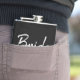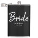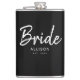 Mantenha-se hidratado no estilo com este moderno Flask de Nome Personalizado do Script Branco Preto para Bride. Ele foi projetado com "noiva" em letras brancas modernas e brutas. Personalizado com o nome da noiva e ano de casamento. Plano de fundo preto personalizável. Ideia de presente de excelente para chá de panela, festa de solteira ou lua de mel.