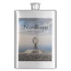 Viagem do Globo no Cabo do Norte, no norte da Noruega, com lindas nuvens e luz ao fundo. Coordenadas escritas no design. Foto © Sebastian Worm.