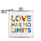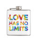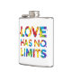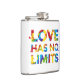 Este design apresenta a frase "O amor não tem limites" formada em cores coloridas do arco-íris.