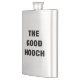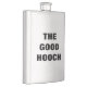 O rótulo óbvio diz: O BOM HOOCH em letras grandes, ousadas, simples, fáceis de ler. Nunca mais terás problemas em dizer ao teu frasco de licor de qualidade do teu frasco de tripa barata, outra vez! Tome orgulho de ter sempre a bebida certa para a ocasião no seu bolso! (Um presente de novidade de boa qualidade para o homem ou mulher que tem tudo.)