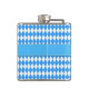Oktoberfest bebendo temático feito no padrão clássico de diamante azul e branco para Oktoberfest, com gráficos de uma fita azul de observação de cetim através do meio. Gráficos de uma flor de edelweiss branca solteiro, que decoram a parte média da frente do frasco. Personalize o texto preto personalizado, na frente, para você mesmo ou como uma ideia encantadora de presente para ela.