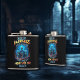 Olá, Escuridão, Meu Velho Amigo Flask. © Desejos do Coração Escuro. Este frasco tem um design colorido com um esqueleto segurando duas bebidas.