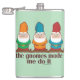 Os gnomos fizeram-me fazê-la. 3 gnomos coloridos diferentes que penduram para fora. A paródia/paródia do diabo fez-me fazê-la. 3 imagens do gnomo. Verde/fundo de turquesa.