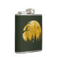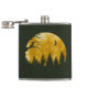 Esta design estética retrata uma cena na floresta noturna em ótimas cores douradas com uma árvore e silhueta florestal e uma lua crescente.