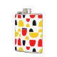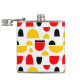 Um padrão abstrato contínuo original feito de formas ovoides e semicirculares desenhadas à mão em vermelho, âmbar e preto sobre um fundo branco/transparente.