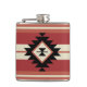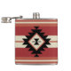 Padrão étnico boêmico asteca com formas geométricas em vermelho, laranja, cinza e cores pretas em fundo listrado