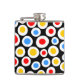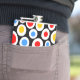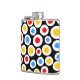 Um design abstrato original composto por muitas manchas brancas arredondadas sobre um fundo preto, cada uma com um centro colorido em vermelho, azul ou amarelo âmbar. Este design de padrão usa uma imagem de azulejo de padrão uniforme de alta resolução grande, permitindo que o padrão seja maior ou menor.