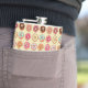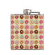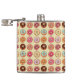 Um padrão de rosca ilustrado multicolorido deliciosamente fofo sobre fundo de bolinhas pastel macio.
