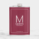 Adicione um toque pessoal ao seu casamento com um frasco de padrinhos de casamento personalizado. Este frasco apresenta um monograma personalizado de padrinho de casamento e nome com título e data de casamento no estilo de letra branco moderno de sans serif em fundo vermelho de burgundy. Também perfeito para o melhor homem, pai da noiva e mais.