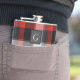 Adicione o Padrinho de casamento, o melhor homem, o pai da noiva ou da noiva inicial do noivo para personalizar este dom monograma que apresenta um notável Tartan vermelho, preto e cinza desenhado por LeahG. Presentes elegantes e modernos monogramas para homens que fazem excelentes presentes de noiva.