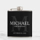 Adicione um toque pessoal ao seu casamento com um frasco de padrinhos de casamento personalizado. Este frasco apresenta o nome de padrinho de casamento personalizado, com título e data de casamento em branco e monograma em cinza como fundo, em estilo serif clássico, em fundo preto. Também perfeito para o melhor homem, pai da noiva e mais.