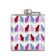 Estilo silhueta de gato bonito em roxo e blues com corações cor-de-rosa no meio. Frasco de anca.