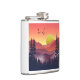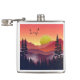 Uma paisagem abstrato de uma cena de montanha com um nascer do sol e árvores em tons negros de fogo e vermelho.
