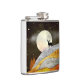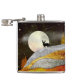 design de paisagem abstrato em tons vibrantes de prata, ouro e vermelho com um nascer de lua, estrelas e veado.