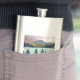 Esta linda paisagem de abstrato mostra uma cena de montanha com um lago e um céu multicolorido em tons de vermelho, ciano, azul, amarelo e ouro.