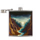 Uma bela paisagem de um canyon com um rio em tons negros de marrom, bronzeado, azul, ciano, ouro e bege.