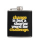 Adicione um pouco de inspiração e motivação ao seu drinque favorito com este frasco, que contém as palavras "mudar é apenas a palavra mais curta para desafiar". Design e Copiar © W.H. Sim. Todos os Direitos Reservados. Mais informações em zazzle.com/wordsofwhimsy
