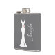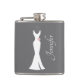 Um frasco feito com uma cinza de fundo elegante. Uma ilustração gráfica de um elegante vestido branco pendurado num cabide. Design minimalista simples.