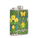 Papel de parede de jardim pintado à mão com pânico, lírios, corações sangrando flores, folhas, pássaros e borboletas. Padrão sem costura