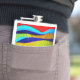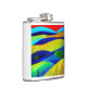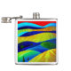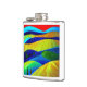 Uma paisagem abstrato de colinas rolantes em cores vibrantes brilhantes com linhas angulares.