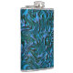 Arte gráfica que simula curvas em uma parede texturizada com azul escuro e algumas partes verdes escuras que podem aparecer em alto alivio ou profundidade, detalhes de ferrugem suave.