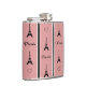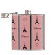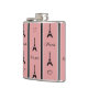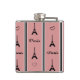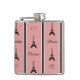 Ilustração Paris com Torre Eiffel e decoração cardíaca e design de texto de Paris sobre fundo listrado preto, branco e rosa