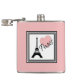 Ilustração Paris com Torre Eiffel e decoração cardíaca em quadrados brancos e pretos em fundo rosa