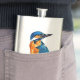 um trabalho de arte de aquarela tradicional de um pequeno pássaro-rei em cor azul e laranja num frasco.