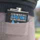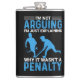Balão de Penalty do Jogador de Hockey com texto branco e azul em um fundo preto lê: "Eu não estou discutindo só porque não foi uma penalidade!" Balão de humor de hóquei, certamente um sucesso com qualquer jogador de hóquei também mostra jogadores de hóquei da silhueta azul.
